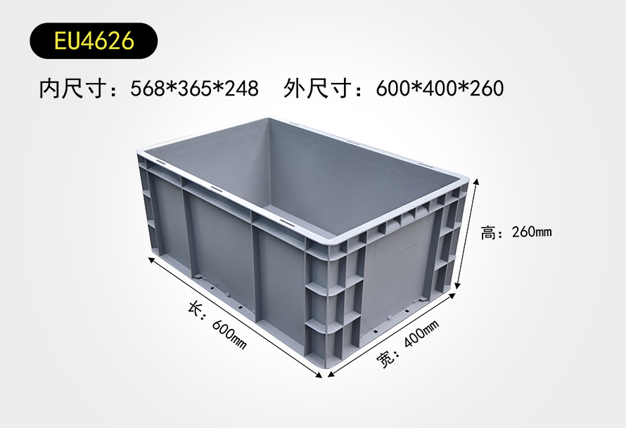 | EU4626物流箱 | 568*365*248 | 600*400*260 | 灰/白/蓝 | 印字/烫金 |
