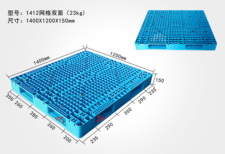 | 1412网格双面托盘 | 1400*1200*150 | 22/23 | 1.5/2T | 6T | 8/12 |